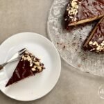 - Czekoladę rozpuść z wodnej kąpieli i dodaj pozostałe składniki. Całość dobrze wymieszaj i polej na wystudzone ciasto.