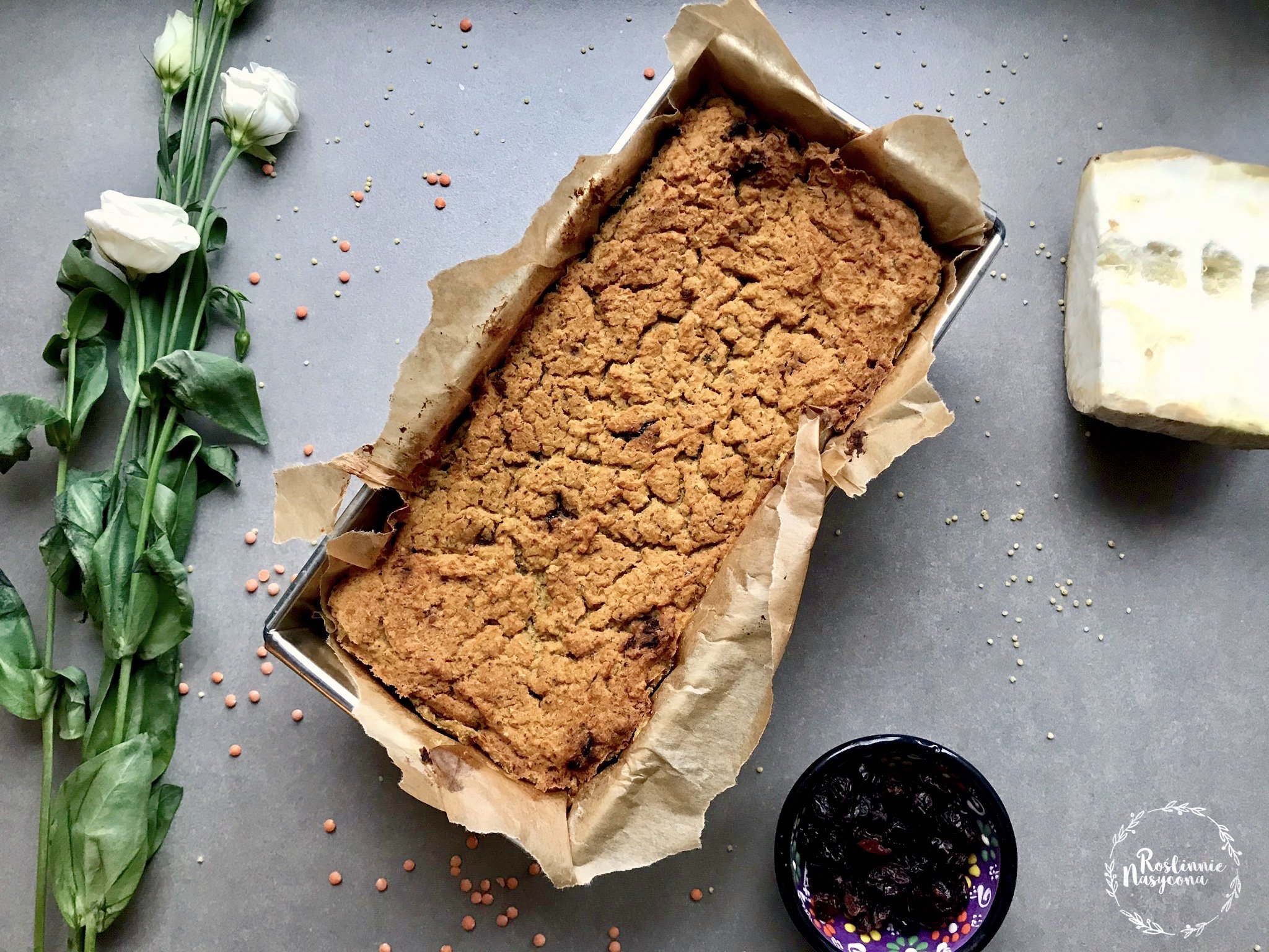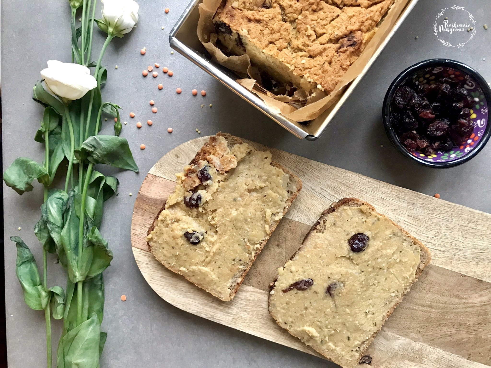 wegański pasztet z czerwonej soczewicy, selera i żurawiny